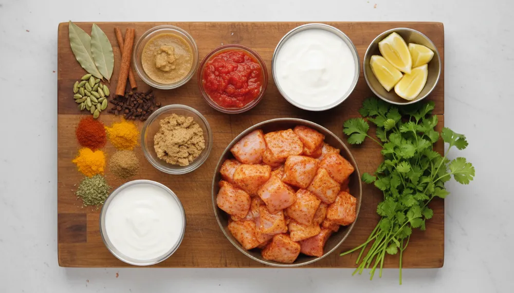 - 1 Marinate chicken with yogurt, ginger-garlic paste, and spices for 30 minutes.