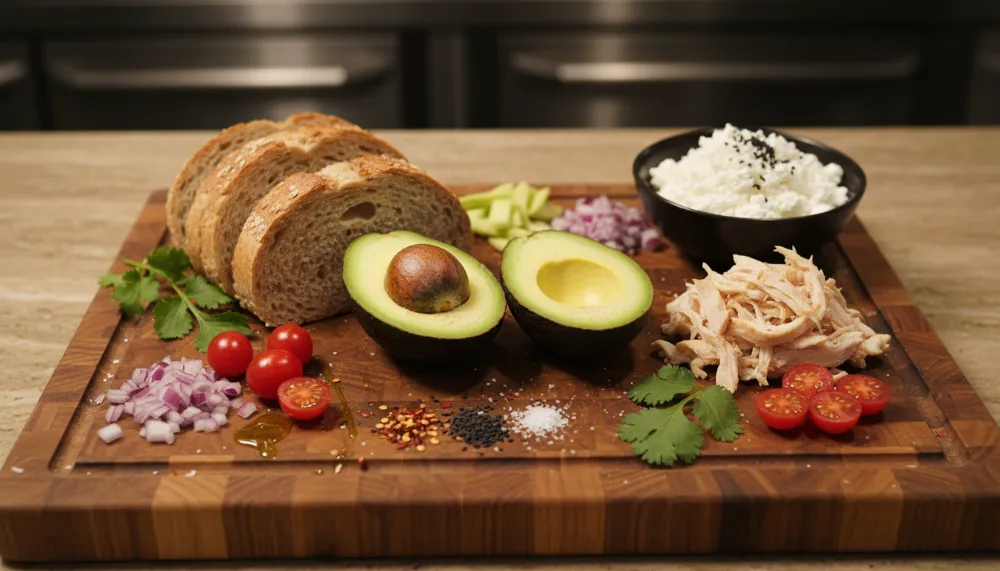 For a Mediterranean twist, use shredded chicken breast. This is a great way to utilize leftovers from dinner prep. Toast a slice of artisanal sourdough and rub it with a raw garlic clove while warm. Spread the avocado and top with the chicken, which can be warmed slightly. Add crumbled feta cheese, pickled red onions, and a heavy sprinkle of hemp seeds. This combination provides a complex texture profile that satisfies the palate and the muscles.