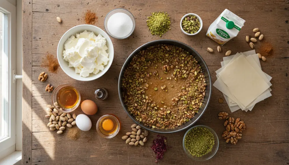Our syrup consists of high-quality honey, water, and a splash of fresh lemon juice. Because we are adhering to strict dietary guidelines, we use alcohol-free vanilla bean paste to add depth to the syrup. Avoid any alcohol-based extracts or liqueurs. The lemon juice is vital as it prevents the sugar from crystallizing and provides the necessary acidity to balance the richness of the Baklava Cheesecake. Once the syrup is applied, the cake must be allowed to rest and cool completely, preferably overnight in the refrigerator.