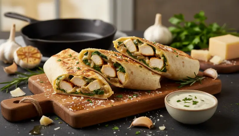 While the classic Cheesy Garlic Chicken Wraps are hard to beat, you can certainly experiment. For a lower-carb version, replace the flour tortilla with large collard green leaves or high-fiber wraps. If you prefer a bit of heat, adding sliced jalapeños or a dash of hot sauce to the garlic yogurt mixture works beautifully. You can also swap the spinach for kale or arugula, depending on your preference for bitterness. Regardless of the changes, the core principles of Cheesy Garlic Chicken Wraps, garlic, cheese, and perfectly cooked chicken, remain the same.