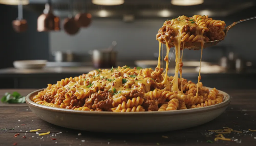 Master the art of Cheesy Ground Beef Pasta with this 30-minute professional recipe. Lean beef, savory tomato sauce, and gooey cheddar make the perfect family meal.