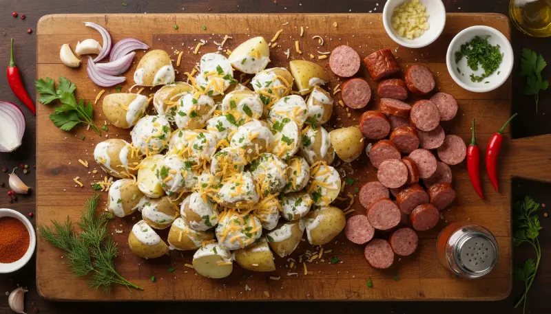 Ranch is more than just a salad dressing, it is a versatile spice blend. When applied to **Cheesy Ranch Potatoes and Smoked Sausage**, it acts as a dry brine. The salt in the mix draws out just enough moisture from the potatoes to allow the herbs to stick. We amplify this with a touch of smoked paprika and garlic powder. The paprika echoes the smokiness of the beef, while the extra garlic ensures a bold, aromatic finish that will have your kitchen smelling like a gourmet bistro.