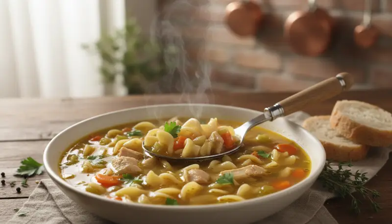 The “noodle” in Chicken Noodle Soup is just as important as the “chicken.” While many prefer the classic wide egg noodle, others might opt for rotini, ditalini, or even broken spaghetti. The secret to a perfect noodle is timing. If you cook the noodles for too long, they will absorb too much liquid and become bloated, turning your elegant Chicken Noodle Soup into a porridge. Conversely, cooking them separately can sometimes lead to a lack of flavor integration. We recommend cooking the noodles directly in the broth during the final ten minutes of simmering. This allows the starch to help bind the soup while the noodles soak up the herb-infused liquid.