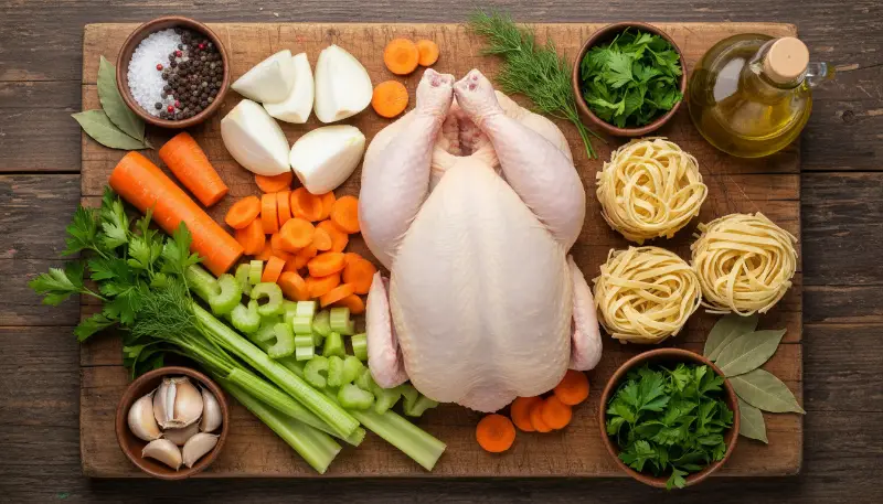 Many high-end culinary recipes suggest using a dry white wine to deglaze the pan after browning the chicken. However, for a superior Chicken Noodle Soup that remains accessible to all, we substitute alcohol with high-acid fruit juices or extra-fortified broth. Fresh lemon juice or a high-quality apple cider vinegar works wonders to scrape up the “fond”, those brown, caramelized bits stuck to the bottom of your Dutch oven. This acidity is what balances the richness of the chicken and beef fats, ensuring the Chicken Noodle Soup tastes bright and vibrant rather than heavy and oily.