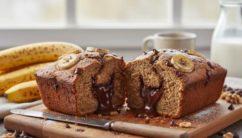 There is something inherently nostalgic about the scent of banana bread wafting through a kitchen. It represents comfort, resourcefulness, and the joy of simple baking. This EASY CHOCOLATE CHIP BANANA BREAD is designed for those who want maximum flavor with minimum effort. Unlike complex cakes that require multiple bowls and precise temperature controls for every ingredient, this bread is forgiving and versatile.