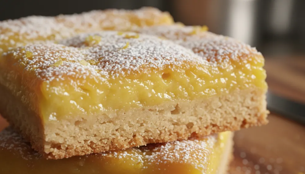 The filling of Classic Lemon Bars with Shortbread Crust is essentially a baked custard or curd. The magic happens through the coagulation of egg proteins. When eggs are mixed with sugar and acid (lemon juice), they form a structural network that thickens as it heats. The addition of a small amount of flour to the filling acts as a stabilizer, preventing the eggs from weeping and giving the bars a clean, sliceable edge.