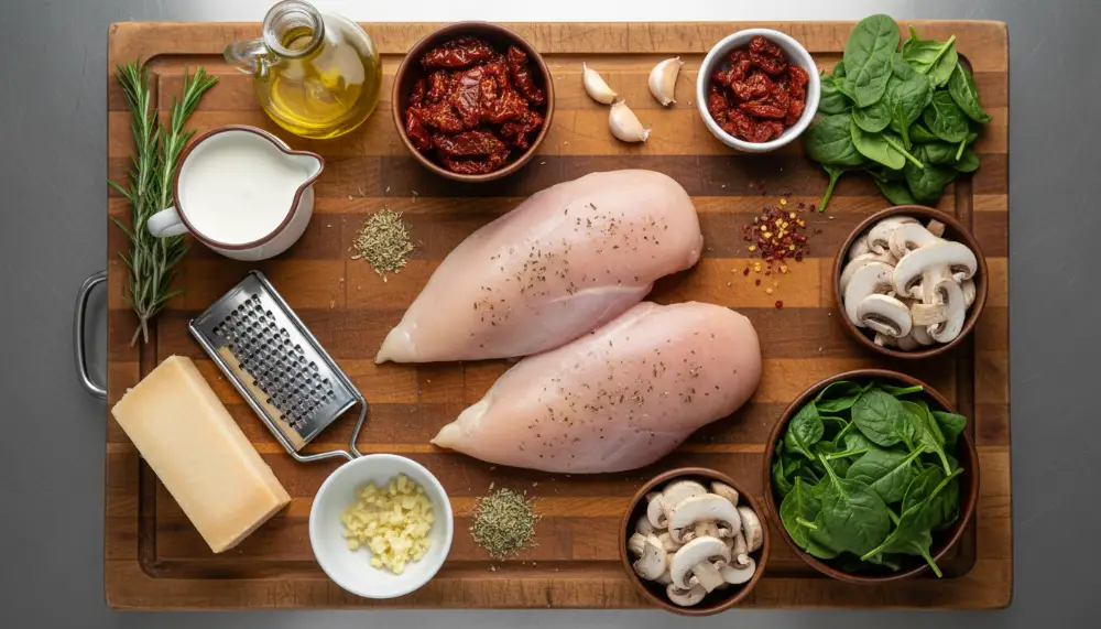 Sun-dried tomatoes provide the essential umami backbone. Because they are dehydrated, their natural sugars and glutamates are highly concentrated. When sautéed in oil, they release a deep, mahogany-colored essence that tints the cream sauce and provides a chewy texture that contrasts with the tender chicken. To ensure the best results, use the Cuisinart 8 Cup Food Processor to finely dice your tomatoes and garlic for an even distribution of flavor throughout every bite.
