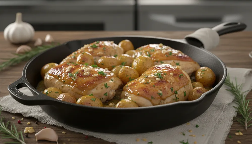 Discover the ultimate Garlic Butter Chicken and Potatoes recipe. This 1500+ word guide covers historical origins, professional searing techniques, and alcohol-free deglazing secrets.