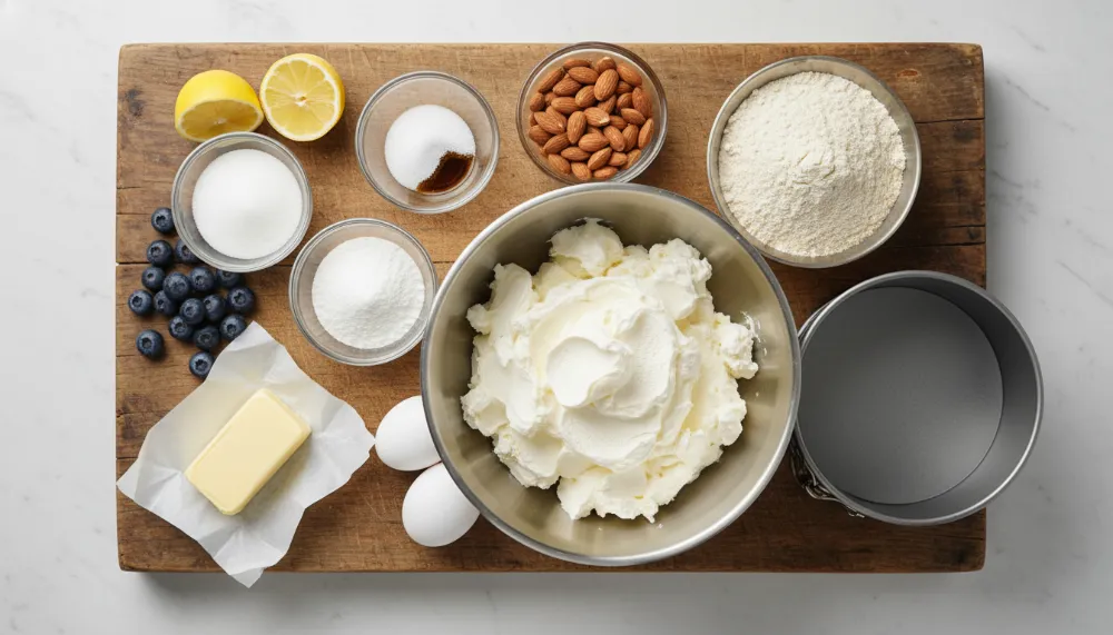 Incorporate Meyer lemon zest into the almond crust for a citrus aroma. Top with a reduction of wild blueberries simmered with a splash of apple juice and lemon juice until thickened into a glossy compote. The acidity of the lemon cuts through the richness of the cheese beautifully.