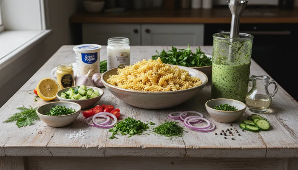The success of a green goddess pasta salad depends entirely on the vibrancy of its dressing. Unlike a standard pesto, which relies heavily on basil and nuts, the green goddess profile is built on a complex blend of tender herbs. The addition of tarragon provides a unique, sophisticated anise note that distinguishes it from any other salad. By using a high-quality blender like the Ninja BN751 Professional Plus DUO Blender, you can ensure that the herbs are pulverized into a smooth, emerald-green emulsion rather than just being chopped. This allows the essential oils of the chives and parsley to fully integrate with the yogurt and avocado base.