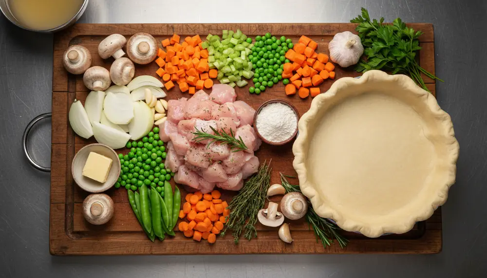 The secret to a world-class puff pastry pie or traditional shortcrust is temperature management. Your butter must be ice-cold. When the cold fat hits the hot oven, the water within the butter evaporates instantly, creating pockets of steam that lift the layers of flour, resulting in that sought-after crunch. For the filling, the roux, a mixture of equal parts butter and flour, must be cooked long enough to remove the “raw” flour taste but not so long that it loses its thickening power. By using high-quality chicken broth and a touch of heavy cream, you create a suspension that holds the vegetables in place without becoming runny.