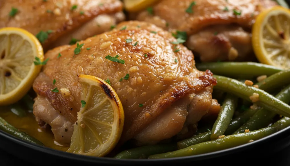 A standard serving of this Lemon Garlic Butter Chicken Thighs Recipe with Green Beans is remarkably balanced. A typical serving contains approximately 250 to 400 calories. It is naturally high in protein, providing 25g to 35g per portion, which is essential for muscle repair and satiety. The green beans contribute essential fiber and Vitamin C, while the garlic provides antioxidants.