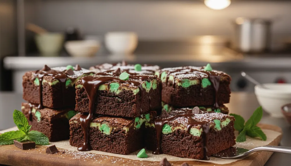 Mint Chocolate Brownies are best served at a slightly cool room temperature. This allows the chocolate base to soften enough to be chewy while keeping the mint layer firm. For a gourmet presentation, serve each square with a sprig of fresh mint or a dusting of extra cocoa powder. These brownies also pair beautifully with a cold glass of milk or a hot cup of black coffee, which cuts through the richness of the fudge.