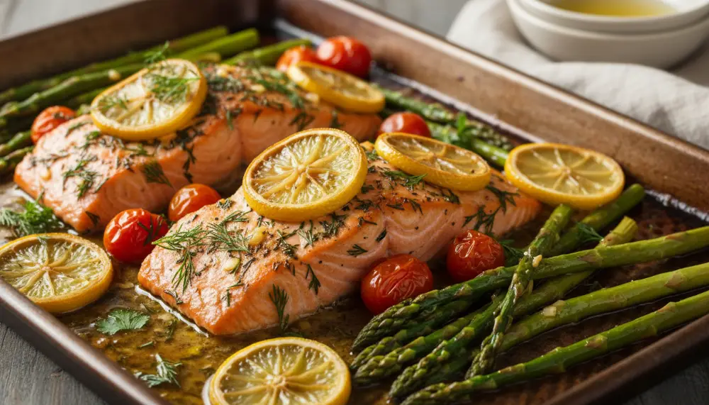 There is a scientific reason why One Pan Lemon Herb Salmon is so satisfying. Salmon is a fatty fish, rich in long-chain omega-3 fatty acids. While these fats are incredibly healthy, they can sometimes feel heavy on the palate. Citric acid from the lemon acts as a natural palate cleanser, breaking down the perception of fat and making each bite feel light and refreshing. Furthermore, when you roast lemon slices directly on the fish, the natural sugars in the fruit caramelize, adding a subtle sweetness that balances the savory garlic and herbs.