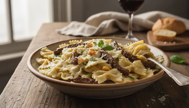 Creamy Parmesan Garlic Beef Bowtie Pasta
