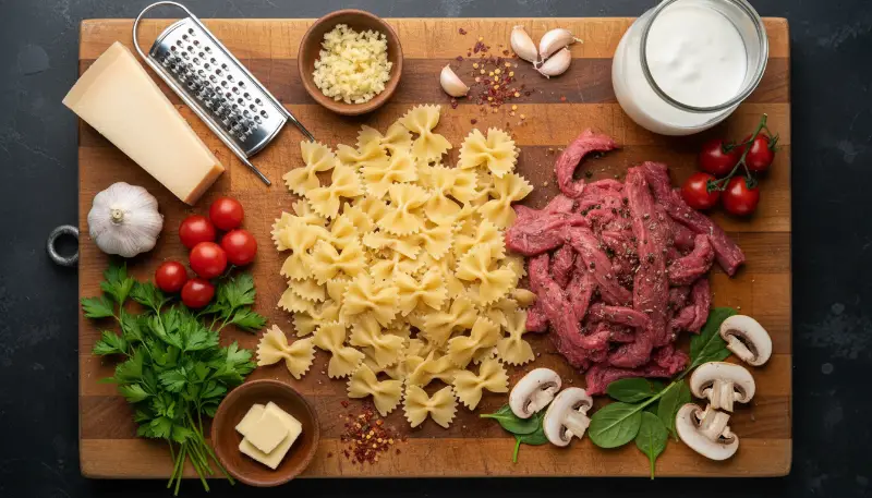 You can also experiment with different pasta shapes, though bowties are traditional. Penne or fusilli also work well as they have ridges that hold the garlic cream sauce effectively. Regardless of the shape, the technique remains the same, ensure the pasta is cooked in the broth to maximize the flavor of your Creamy Parmesan Garlic Beef Bowtie Pasta. For those looking for more meal ideas, you can explore our comprehensive recipe sitemap to find complementary side dishes and desserts.