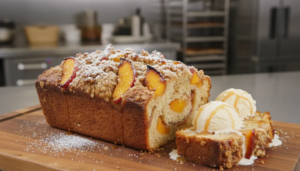 Acidity and Tang are essential for balancing the heavy sugar content found in fruit breads. Chefs often incorporate rich Greek yogurt or buttermilk into the batter. For a more experimental profile, peaches can be macerated in a small amount of apple cider vinegar instead of traditional bourbon. This brightens the fruit’s natural flavor and tenderizes the crumb without relying on any alcohol whatsoever.