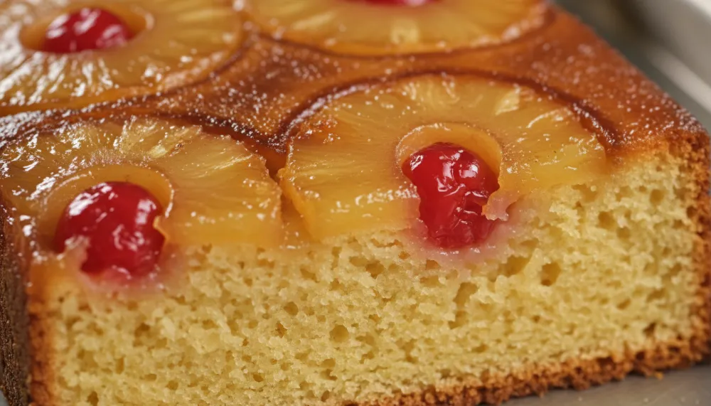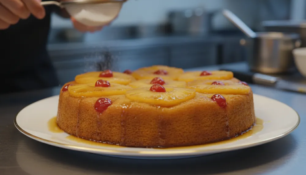 The most nerve-wracking moment for any baker is the final flip. If you wait too long, the caramel will harden and stick to the pan. If you flip too soon, the delicate cake may break apart under the weight of the fruit. The “sweet spot” is typically 10 minutes after the cake comes out of the oven. This allows the structure of the cake to set while the sugar remains in a liquid state. Always run a thin offset spatula around the edges of the pan before inverting. If a pineapple slice does happen to stick to the pan, simply peel it off and place it back onto the cake, no one will ever know!