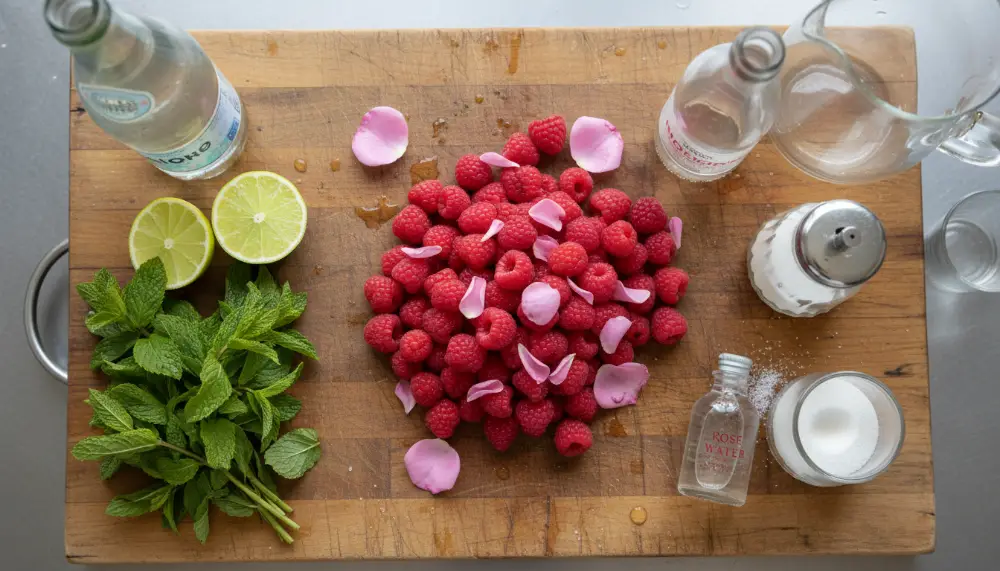 3. The Herbal Twist: Muddle a few leaves of fresh basil or thyme along with the raspberries. The savory notes of the herbs provide a beautiful contrast to the sweet floral aroma of the rose water.