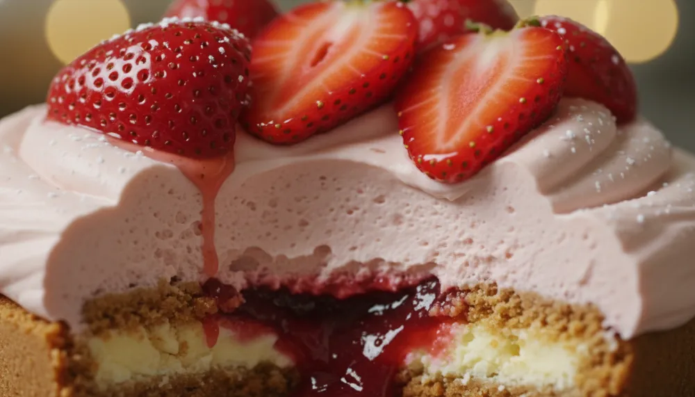 - The Puree: A portion of the berries is blended into a fine liquid and folded into the cheese base, giving the cake a natural pink hue and a subtle baseline flavor.