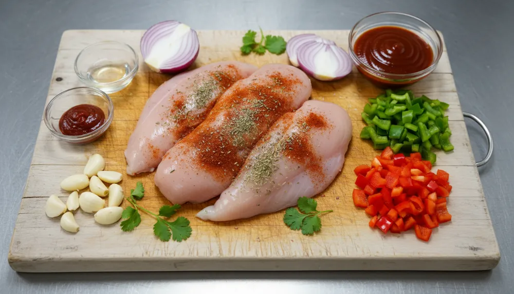 This unique blend uses pineapple juice and tomato sauce. The pineapple juice provides natural enzymes to tenderize the meat while offering a sweetness that replaces brown sugar or sweet liquors. A touch of cider vinegar balances the sugar. For the aromatic base, use the “Holy Trinity” of finely diced celery, onion, and bell pepper, mixed with a heavy dusting of Cajun seasoning containing thyme, black pepper, and garlic.