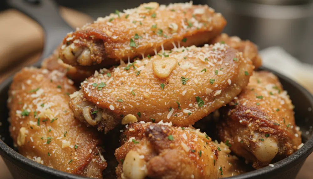 Air Fryer Garlic Parmesan Wings have evolved from a regional specialty into a global staple of casual dining. By utilizing air circulation rather than deep-frying, this preparation maintains the signature crispness while significantly reducing the oil content. While the original “Buffalo” chicken wing was famously created in 1964 at the Anchor Bar in Buffalo, New York, by Teressa Bellissimo, the Garlic Parmesan variation emerged later during the national “wing boom” of the late 1980s and 1990s. As the popularity of spicy wings grew, restaurants began diversifying their menus to include milder, savory alternatives. Rick Smichlas, founder of the Wild Wing chain, is often credited with popularizing the proprietary “Gar Par” (Garlic Parmesan) flavor, turning it into a staple item that balanced the pungent heat of fresh garlic with the salty umami of aged cheese. Today, it remains one of the most popular non-buffalo flavors in professional wing houses.
