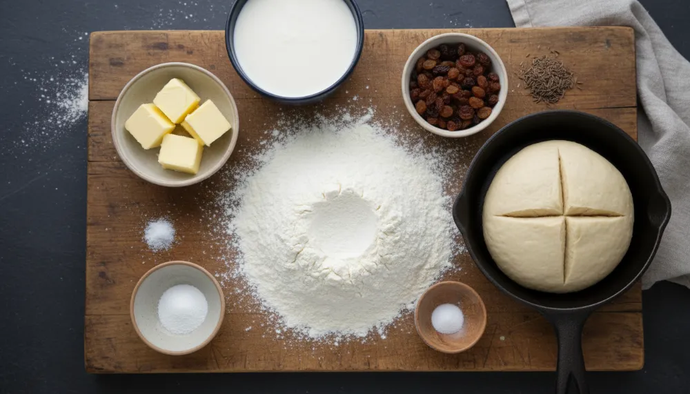 Cast Iron Irish Soda Bread is a nutrient-dense food that provides sustained energy. A typical slice (approx. 55g) contains roughly 170 calories, 30 grams of carbohydrates, and 5 grams of protein. Because it uses buttermilk, it also provides a small amount of calcium and potassium. By using whole-wheat flour (often called “brown soda bread” in Ireland), you can significantly increase the fiber content, making it a more heart-healthy option. Since this recipe avoids pork and alcohol, it remains a clean, high-energy source suitable for various lifestyle requirements.