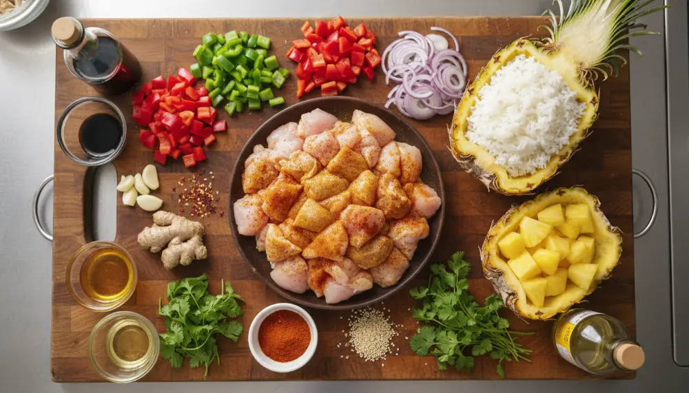 Simultaneously, Southeast Asian culinary traditions played a significant role. In Thailand, Khao Pad Sapparot (Pineapple Fried Rice) has long been a staple of both imperial kitchens and street food stalls. The Thai approach emphasizes the balance of the four key flavors: sweet, salty, sour, and spicy. Meanwhile, in the Philippines, Hamonado styles utilized pineapple juice as a natural tenderizer for meats, creating a glossy, fruit-forward glaze that has influenced Pacific cooking for generations. This Sweet and Savory Pineapple Chicken and Rice Recipe brings all these influences together into a single, cohesive dining experience.